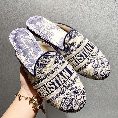 디올 오블리크 자수 콘튼 뮬
