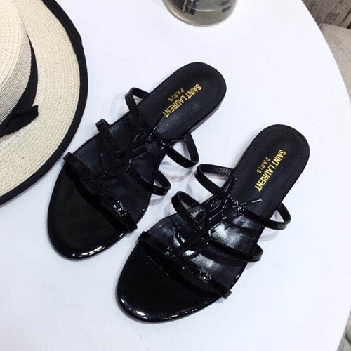 • 생로랑 카산드라 YSL 로고 스트랩 슬리퍼,뮬