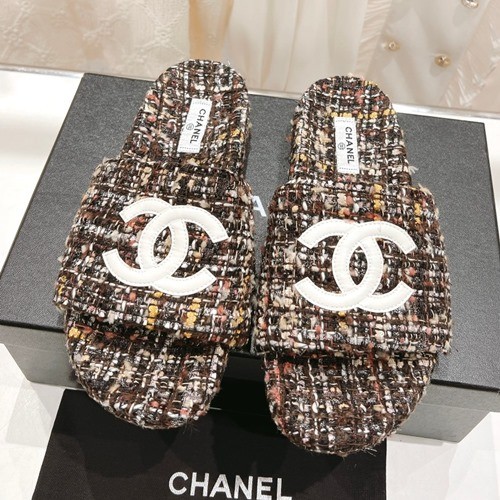 샤넬 CC 로고 트위드 뮬 슬리퍼
