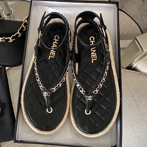 샤넬 CC 체인 램스킨 에스파듀 샌들