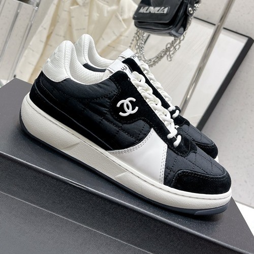 • 샤넬 패브릭 스웨이드 카프스킨 트레이너 스니커즈