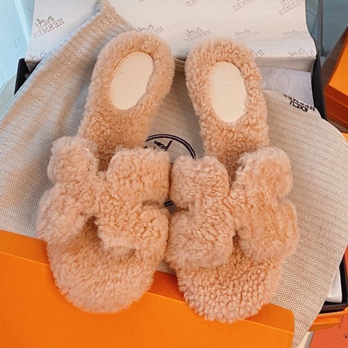 에르메스 오아시스 양털 슬리퍼