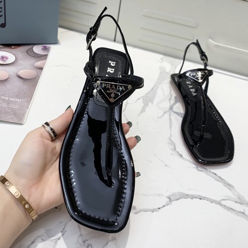• 프라다 삼각로고 T 스트랩 샌들