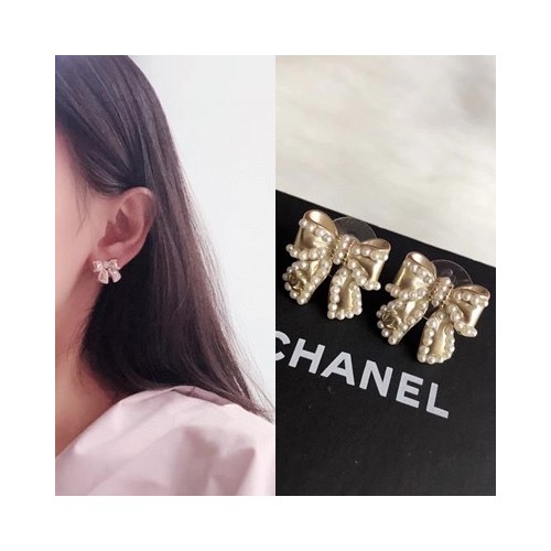 샤넬 리본 진주 귀걸이